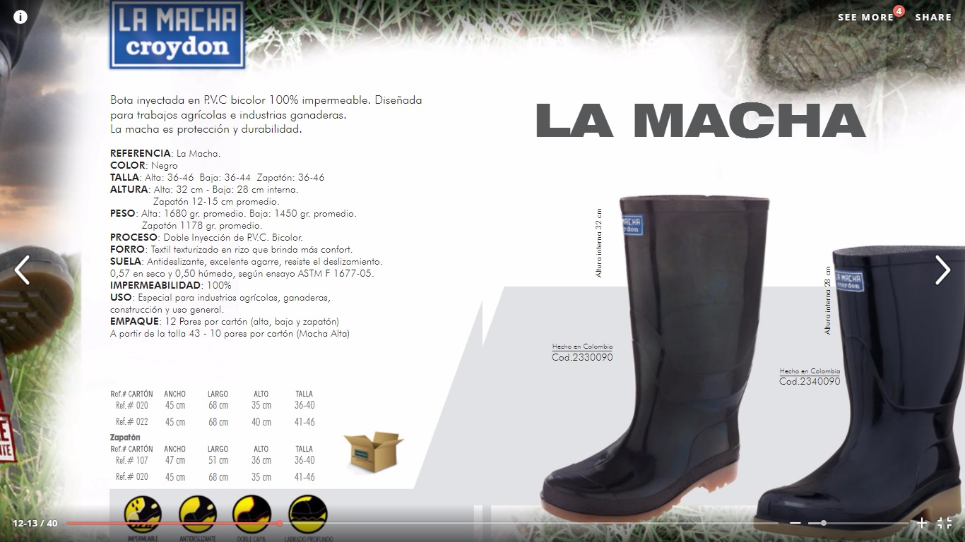 Cuentan con suela antideslizante que proporciona mayor estabilidad en superficies húmedas o irregulares, ayudando a prevenir resbalones. Son impermeables, fáciles de limpiar y duraderas, adecuadas para trabajo agrícola, ganadero, limpieza, construcción ligera y uso general.
