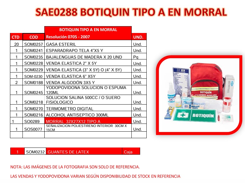 Incluye 14 elementos esenciales cuidadosamente seleccionados para la atención básica de heridas, cortes, golpes y otras eventualidades comunes. Su presentación práctica y organizada permite acceso rápido y fácil a los insumos, facilitando una respuesta oportuna.